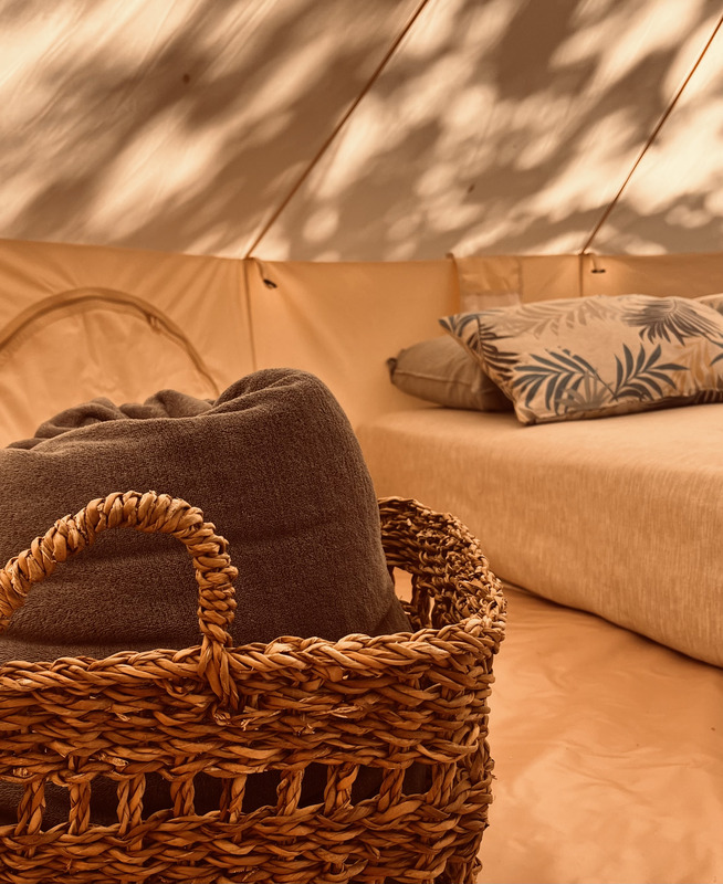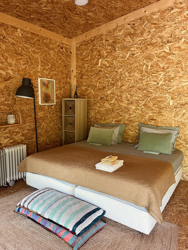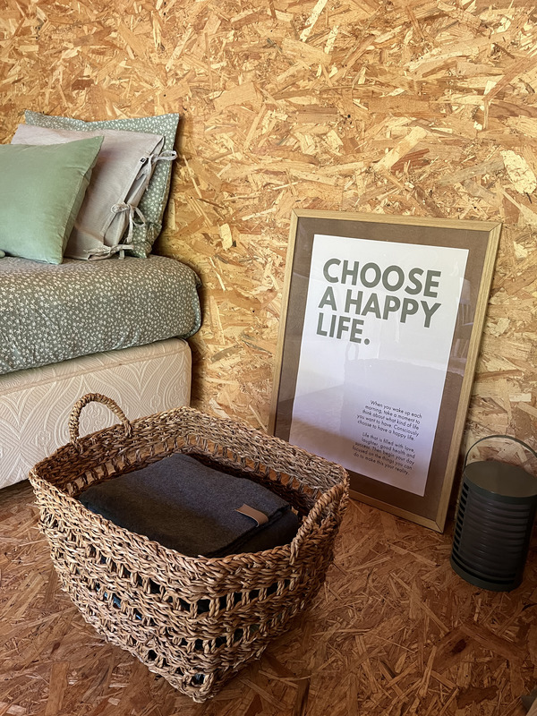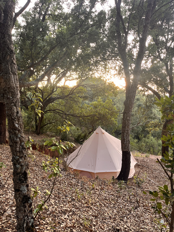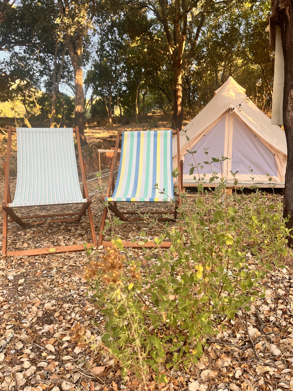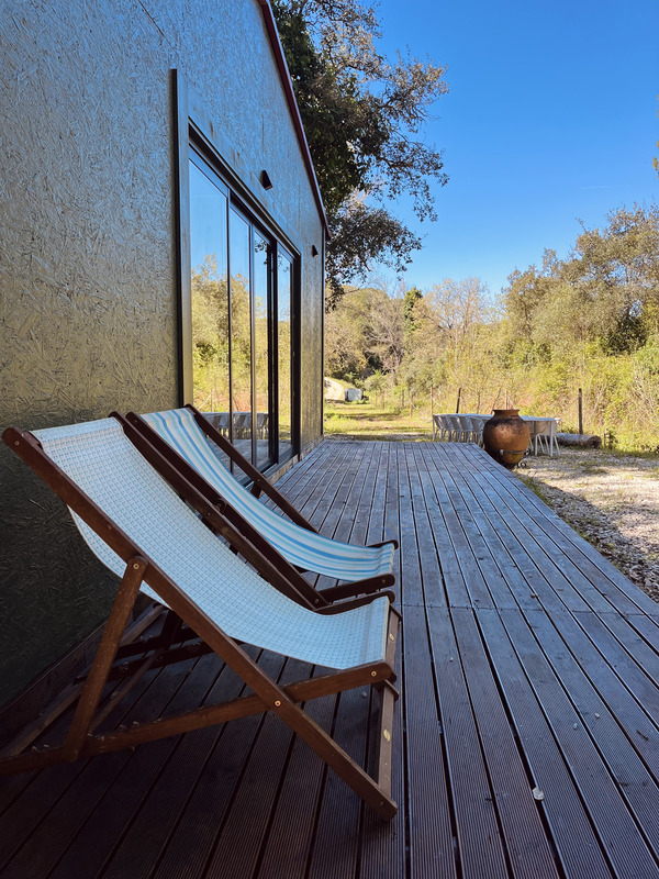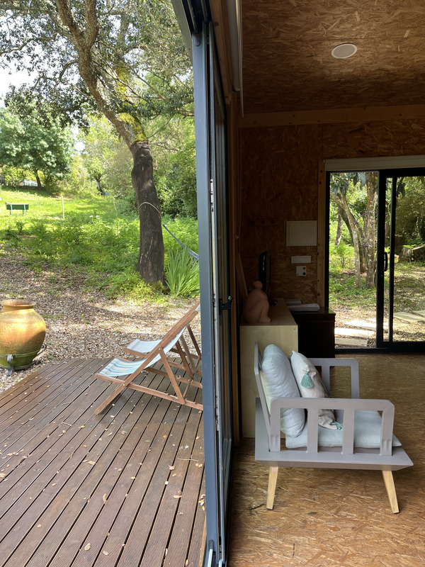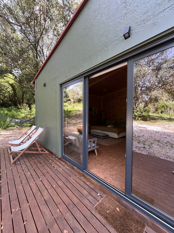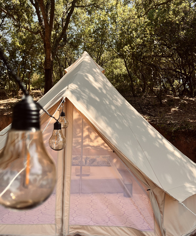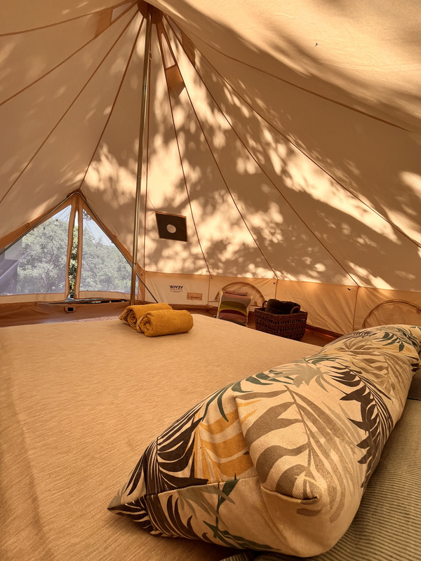 As estadias dividem-se entre a casa principal e o glamping. A casa oferece um ambiente acolhedor, com luz natural e uma ligação constante ao exterior, ideal para quem privilegia conforto sem perder o contacto com a natureza. Já o glamping proporciona uma experiência mais imersiva, com tendas para duas pessoas, onde o som da serra substitui qualquer distração tecnológica. Em ambos os casos, o acesso a uma vasta área de campo faz parte da experiência.