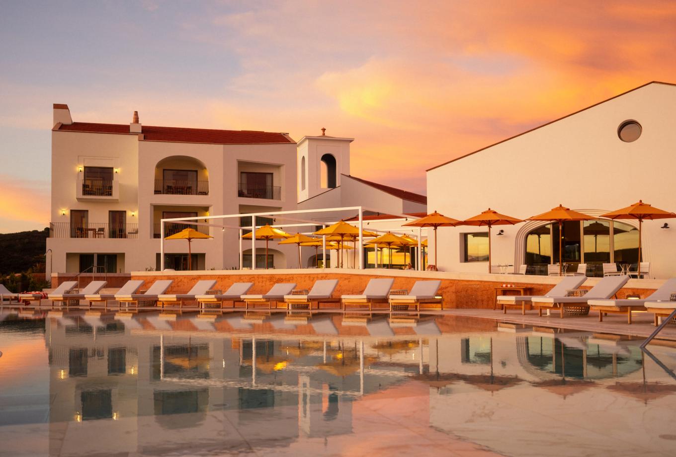 No sul do país, o Viceroy at Ombria Algarve impôs‑se em 2025 como uma das experiências hoteleiras mais marcantes do Algarve interior, como detalhámos na nossa crítica. Situado no coração do barrocal algarvio, este resort de cinco estrelas abre‑se como uma aldeia de casas brancas rodeada de vegetação, onde a sensação de paz começa logo à chegada e se revela em cada recanto — dos caminhos ajardinados às piscinas e espaços comuns que convidam ao descanso longe das multidões costeiras.