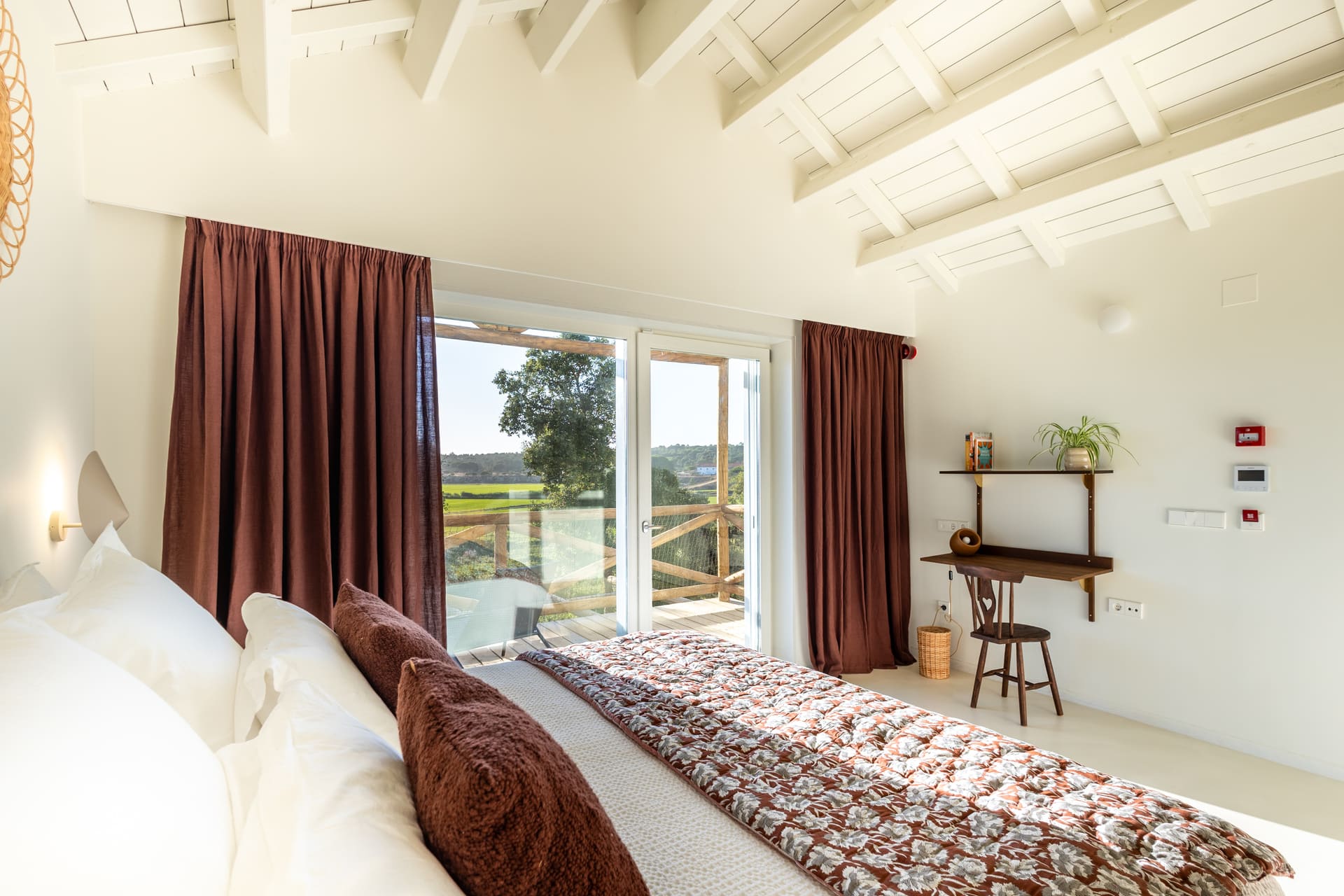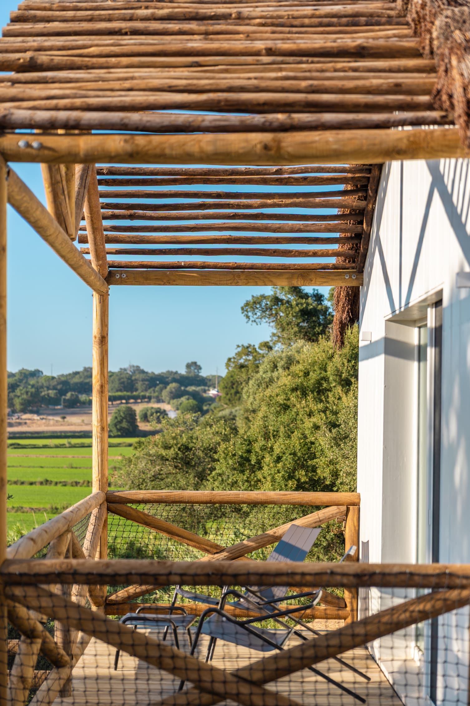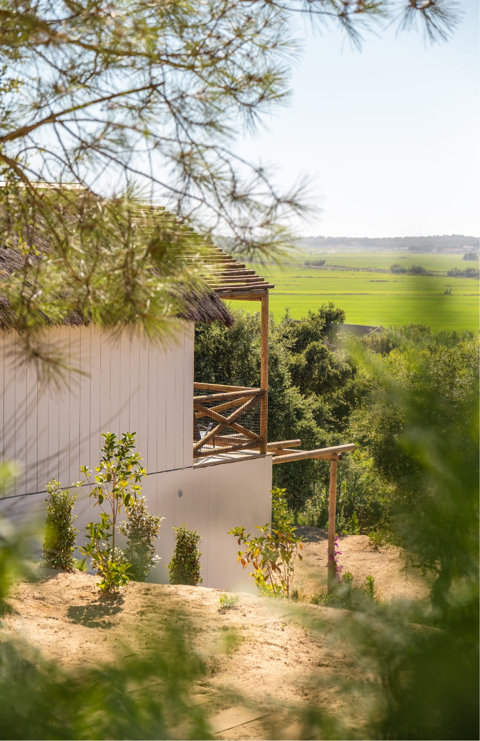 Na mesa, a experiência acompanha essa filosofia. O restaurante privilegia ingredientes sazonais, locais e biológicos, alguns cultivados na própria quinta, com pratos que vão do arroz de cogumelos selvagens ao peixe do dia com vegetais fumados. Há também uma forte aposta em opções vegetarianas. Ao final do dia, o rooftop com vista para os arrozais transforma-se num ponto de encontro com cocktails, pizzas em forno de lenha e um cenário que convida a ficar até ao pôr do sol.