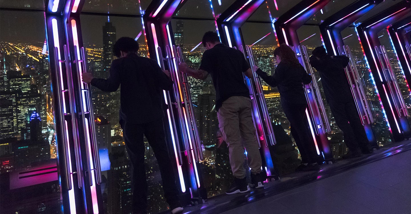 O Tilt, no 94.º andar do John Hancock Center, inclina os visitantes sobre a cidade a 457 metros de altura. Uma experiência única no mundo, parte do 360 Chicago.