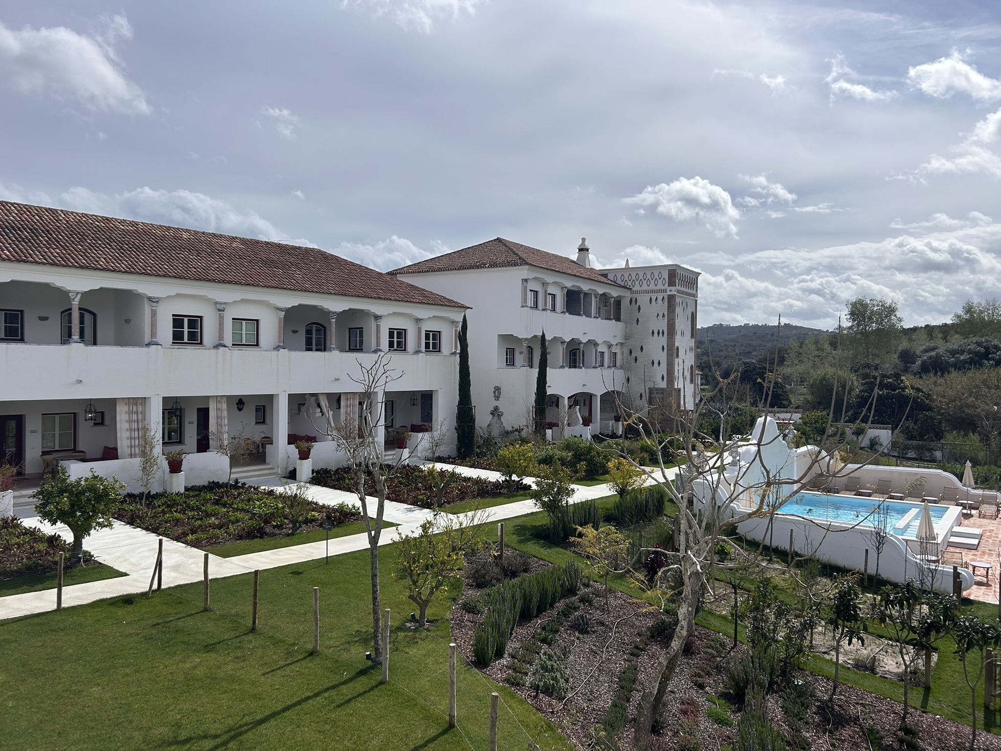 A sensação é de que estamos fora do Alentejo. Uma mistura de culturas e influências artísticas transforma o ambiente numa pequena vila dentro de outra vila. Mas é quando entramos no quarto que a verdadeira aventura começa. E fica já o conselho: experimente a banheira de pedra — nem que seja só para se sentir pequenino no meio de tanta imponência.