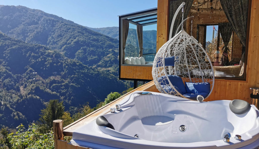 Parece um cenário de filme, mas este alojamento existe mesmo e está a 850 metros de altura na zona montanhosa de Adjara, uma república autónoma da Geórgia. Chama-se Eco House Merisi e oferece cabines ecológicas com decoração cuidada, varandas panorâmicas e uma vista que tira o fôlego — o que torna este lugar único no país.