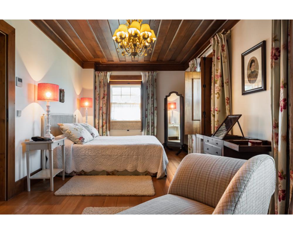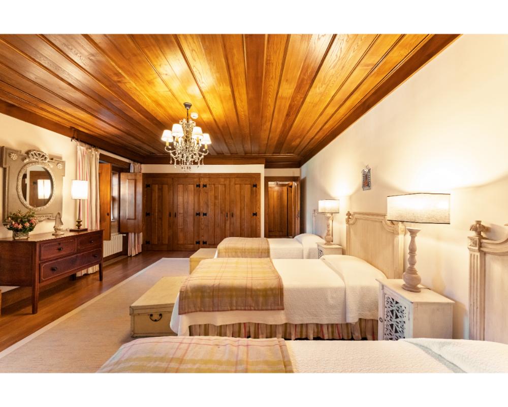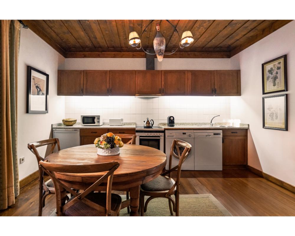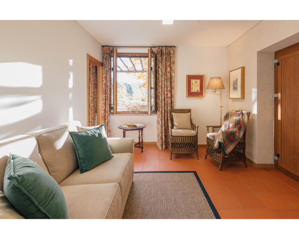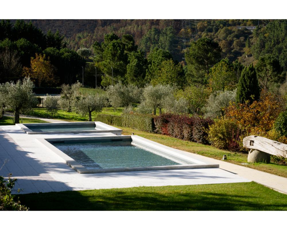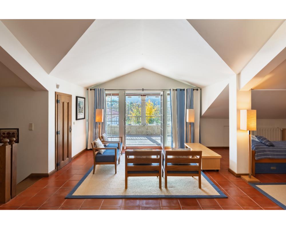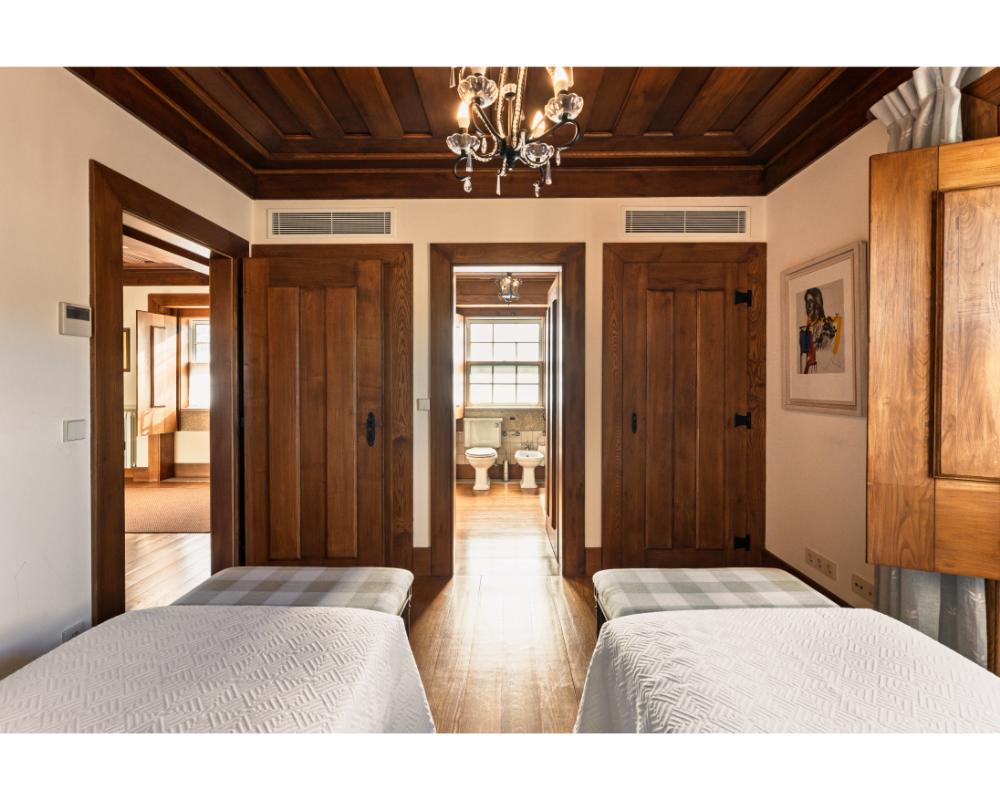Mais do que quartos, aqui encontram-se casas completas, com diferentes tipologias e dimensões, ideais para famílias numerosas ou grupos de amigos que procuram ficar juntos, mas com conforto e autonomia. Cada casa garante privacidade, áreas generosas e espaços exteriores com vista para a serra de Santa Helena. A propriedade estende-se por cerca de cinco hectares e inclui piscina exterior, court de ténis, picadeiro olímpico, vinhedo e zonas de piquenique.