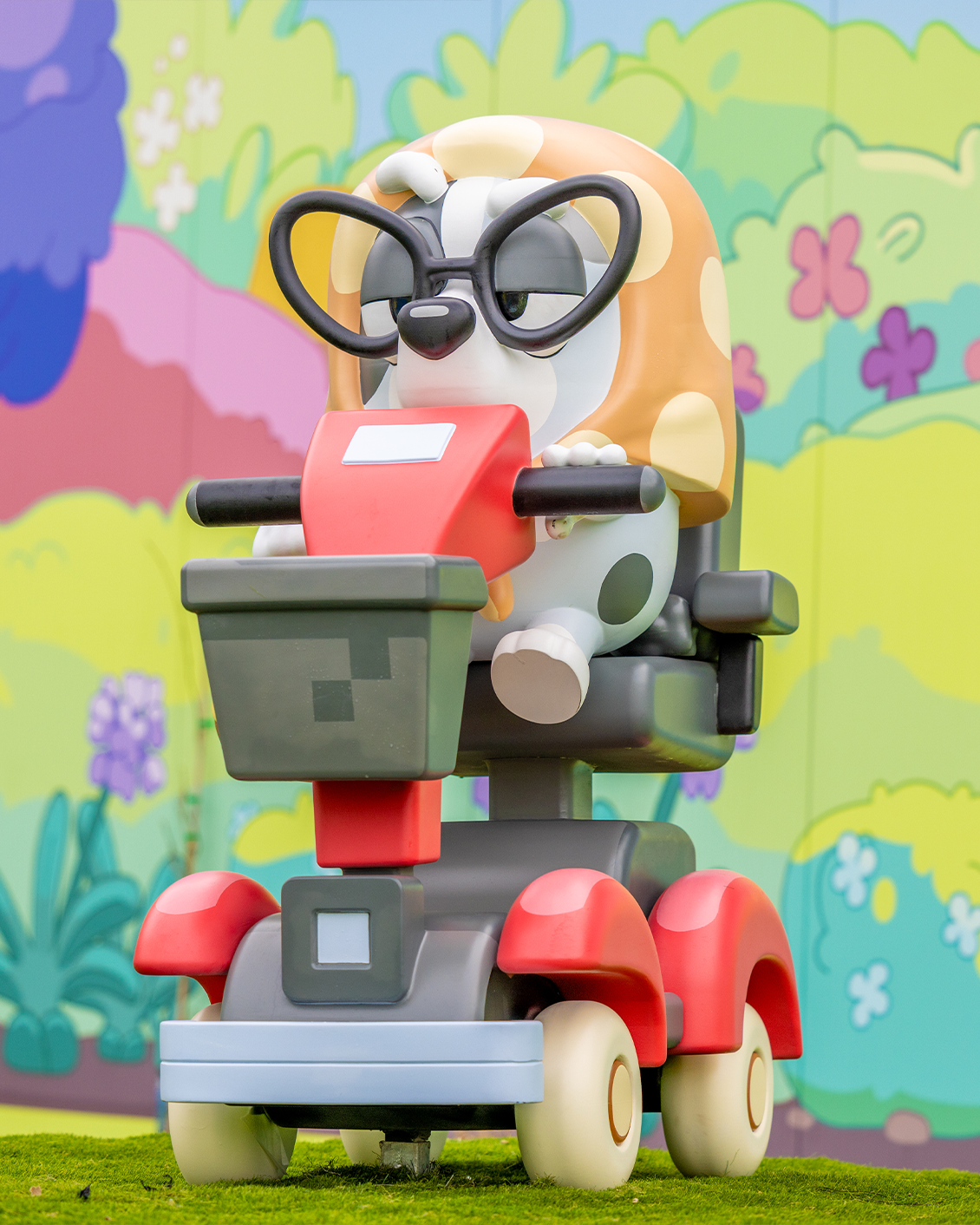 Pensada para crianças e famílias, esta montanha-russa adequada para os mais pequenos é inspirada nas aventuras de Bluey e da irmã Bingo, aqui disfarçadas das icónicas “grannies” (avozinhas). O percurso leva os visitantes pelo quintal da personagem, com curvas suaves, pequenas descidas e cenários coloridos, incluindo árvores, flores e vários elementos interativos. Antes da viagem, há ainda uma zona de espera com atividades, oportunidades para fotografias e referências à casa da Bluey.