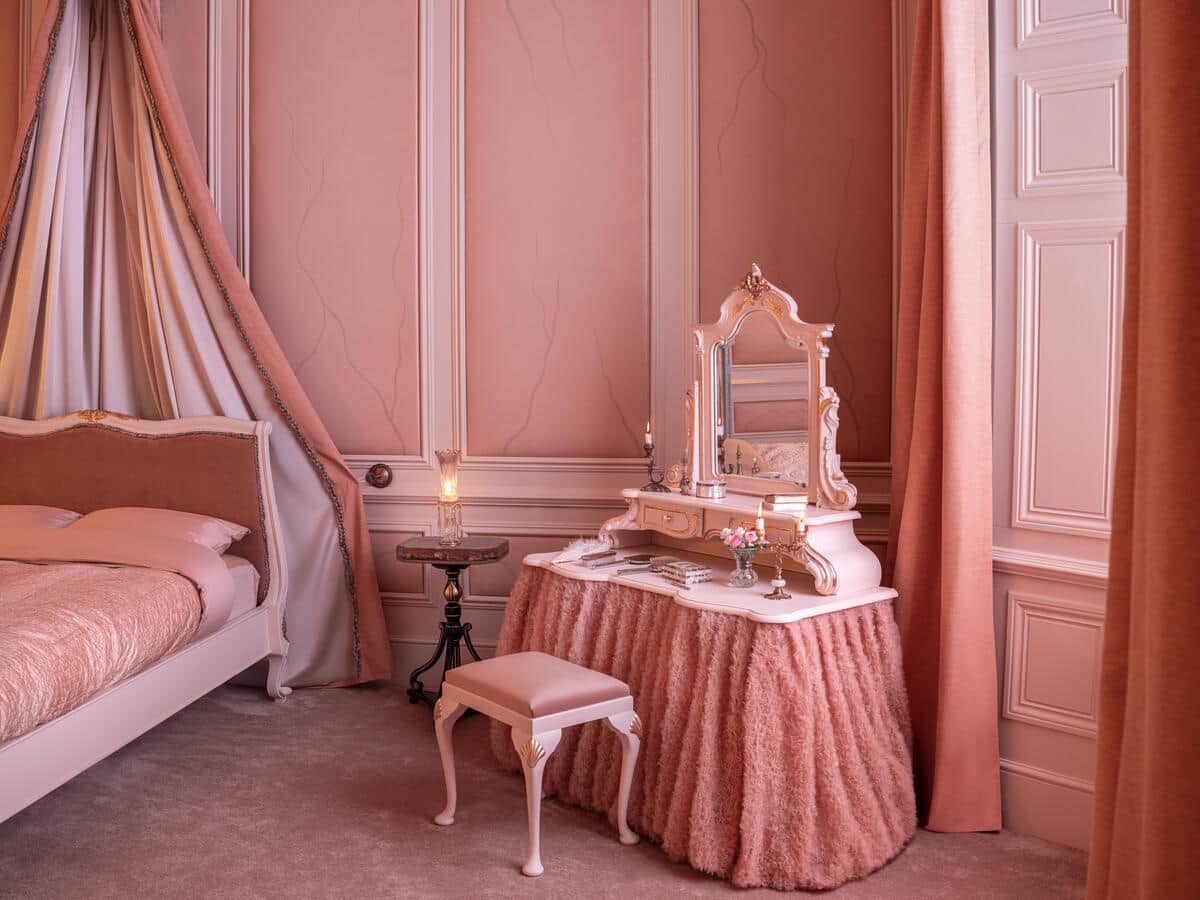 A Airbnb transformou este interesse em experiência: o quarto de Cathy em Thrushcross Grange foi recriado de forma imersiva para receber dois hóspedes por noite. As paredes em tons de pele, os detalhes meticulosamente pensados e a decoração evocam a presença intensa de Cathy. Cada elemento da sala foi projetado para que os visitantes se sintam parte da história — da mobília às texturas que lembram o clima sombrio e apaixonado dos moors.