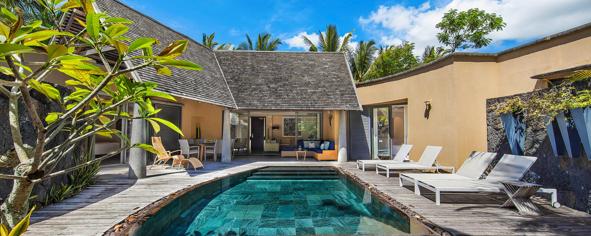 A oferta de alojamento é vasta, desde suítes estilo chalé a villas com piscinas privadas, criadas para maximizar luxo, privacidade e integração com a natureza. O resort é o primeiro eco-friendly das Maurícias, mantendo um equilíbrio entre sustentabilidade e conforto de cinco estrelas. Para famílias, existem clubes dedicados a crianças e adolescentes, serviços de babysitting e uma variedade de atividades em terra e água, garantindo diversão para todas as idades.