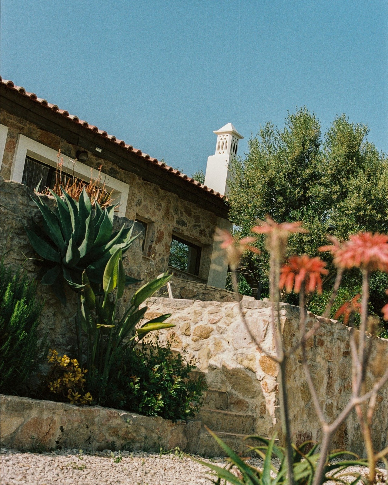 Mas o protagonismo vai mesmo para a piscina natural rodeada por rochas e árvores que convidam ao descanso. Já o terraço é o espaço ideal para ver o pôr do sol ou a vista para o oceano com um copo de vinho biológico à mistura.