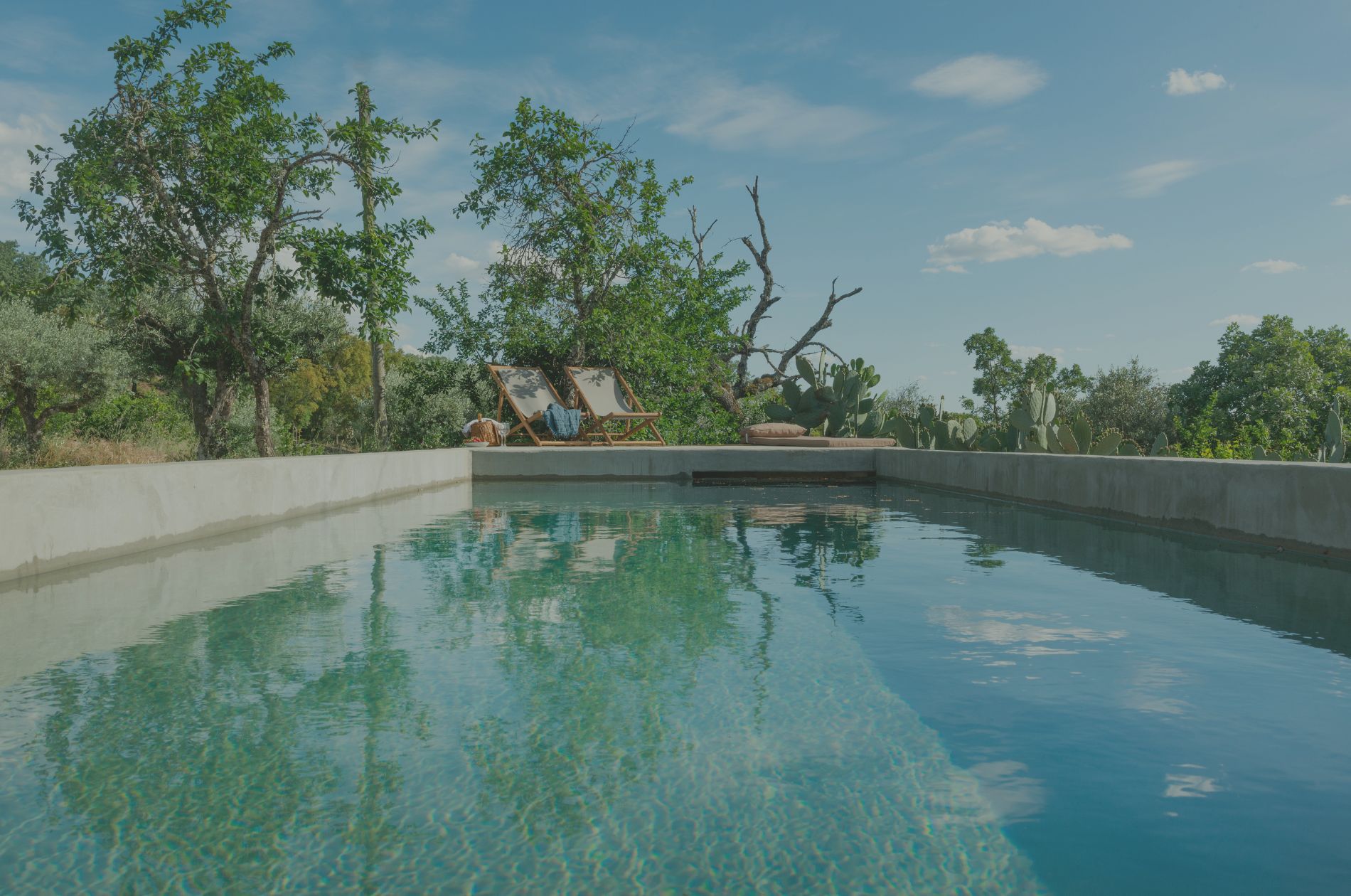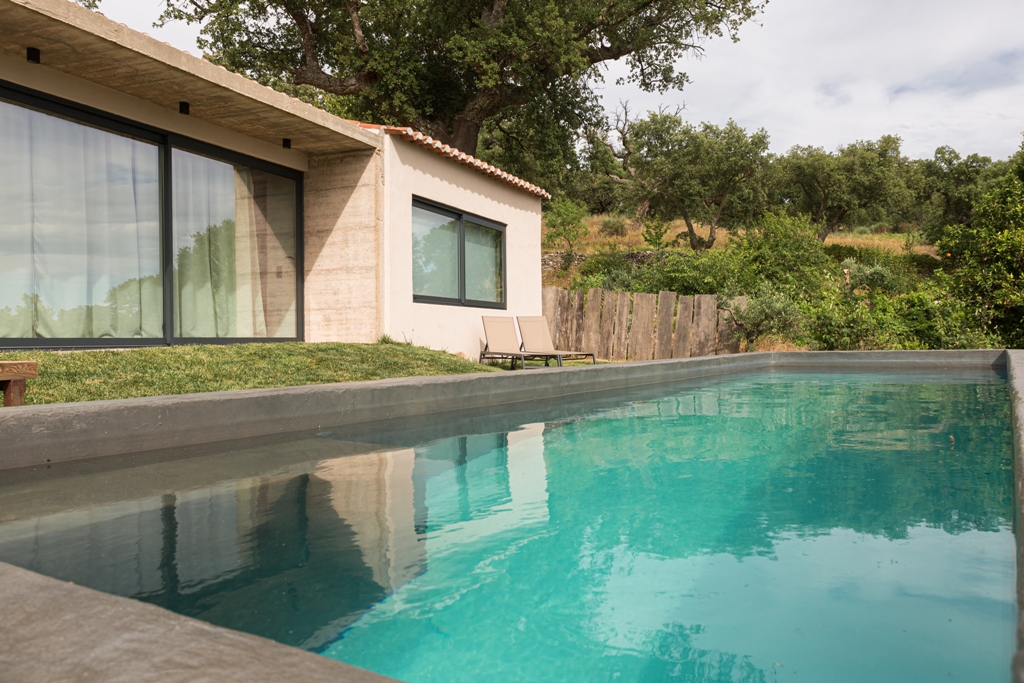 Cada alojamento tem uma piscina privativa que parece transbordar para o monte alentejano. É o sítio ideal para ver o pôr-do-sol enquanto o céu muda de azul para um rosa alaranjado que só o Alentejo oferece.