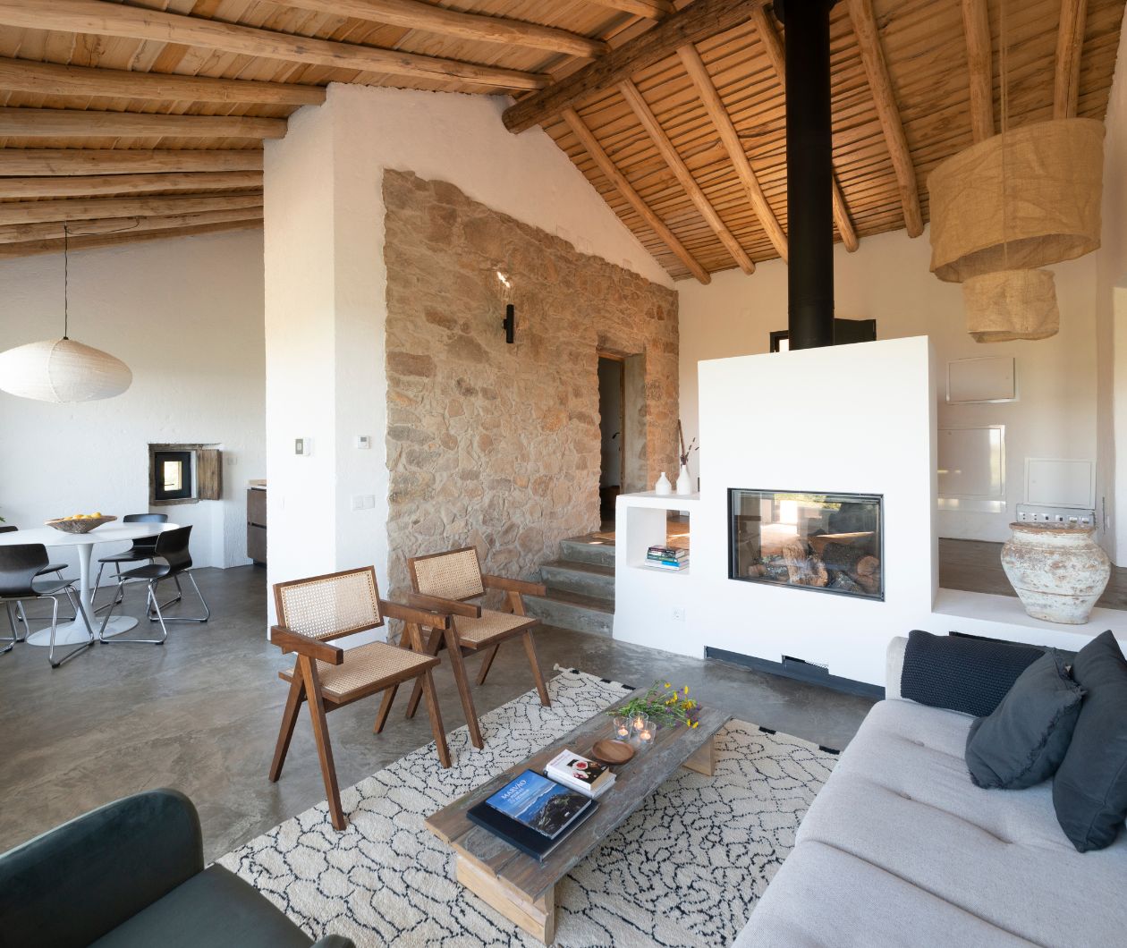 No meio da serra, com pendente a sul, esta vigia mergulha na planície alentejana a Casa Cal. Com uma acolhedora sala com lareira suspensa, uma cozinha com sala de jantar contígua, duas suites e um beliche, esta é a casa ideal para descansar no Alentejo.