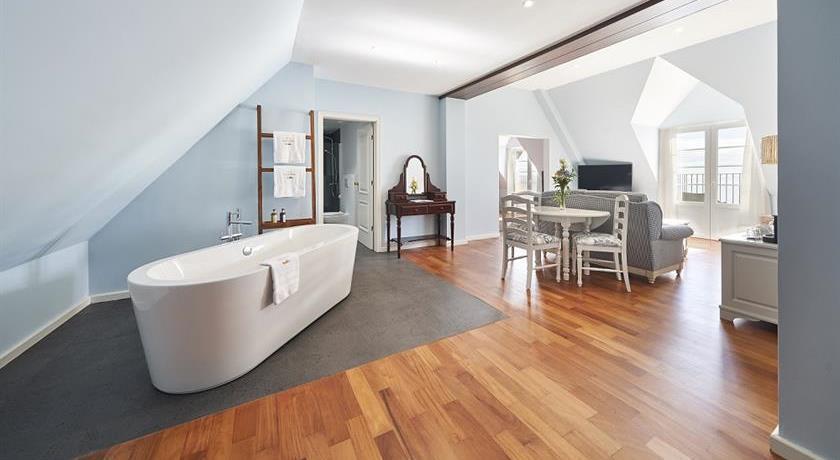 Com 65 quartos, o hotel tem opções desde alojamentos duplos até apartamentos para quatro pessoas. O destaque vai para a Villa com 2 quartos, o maior alojamento da unidade: 60 metros quadrados distribuídos por dois andares, com kitchenette, sala de estar e varanda, ideal para estadias mais longas ou para quem quer sentir-se mesmo em casa. Os preços para esta tipologia começam nos 370,50€ por noite.