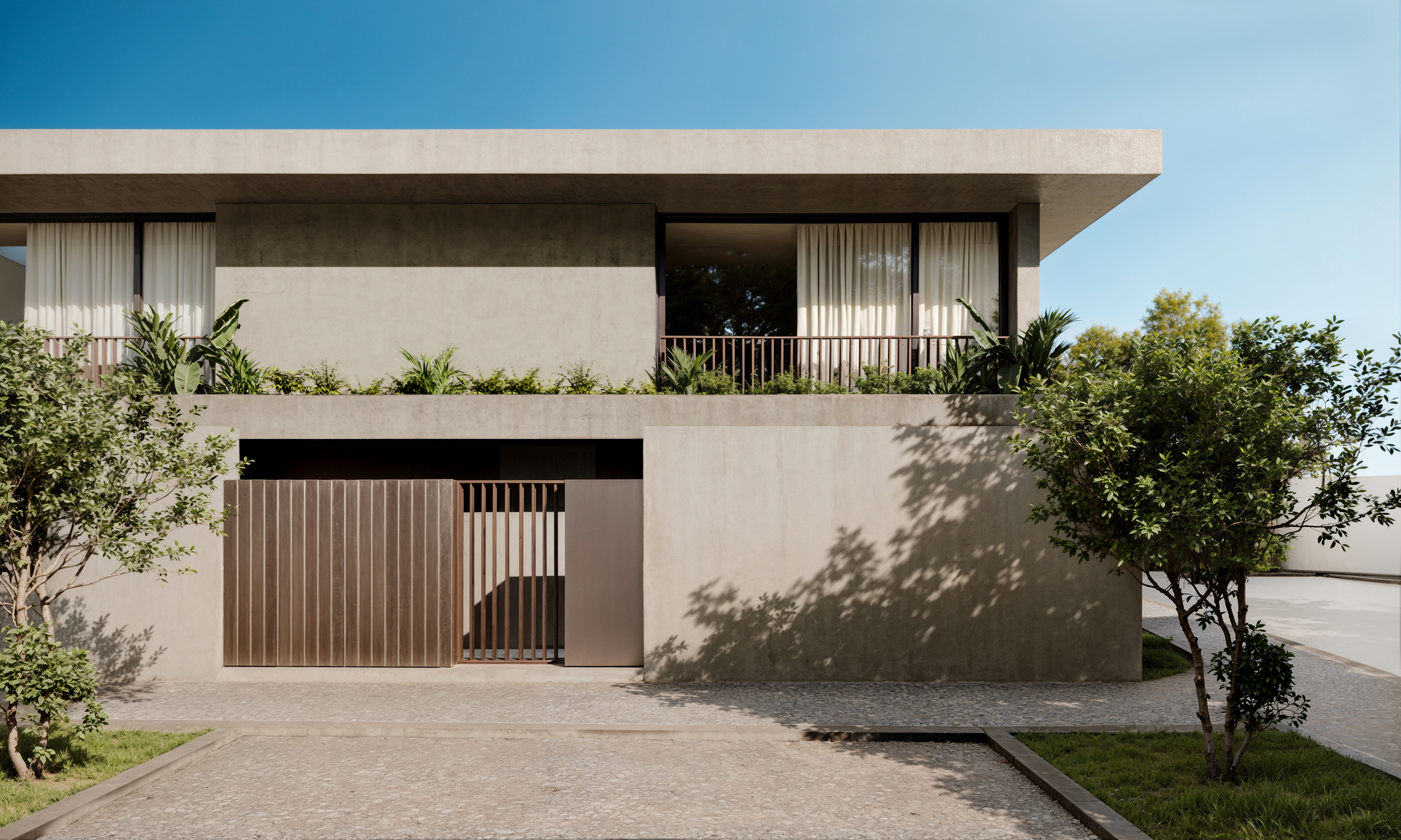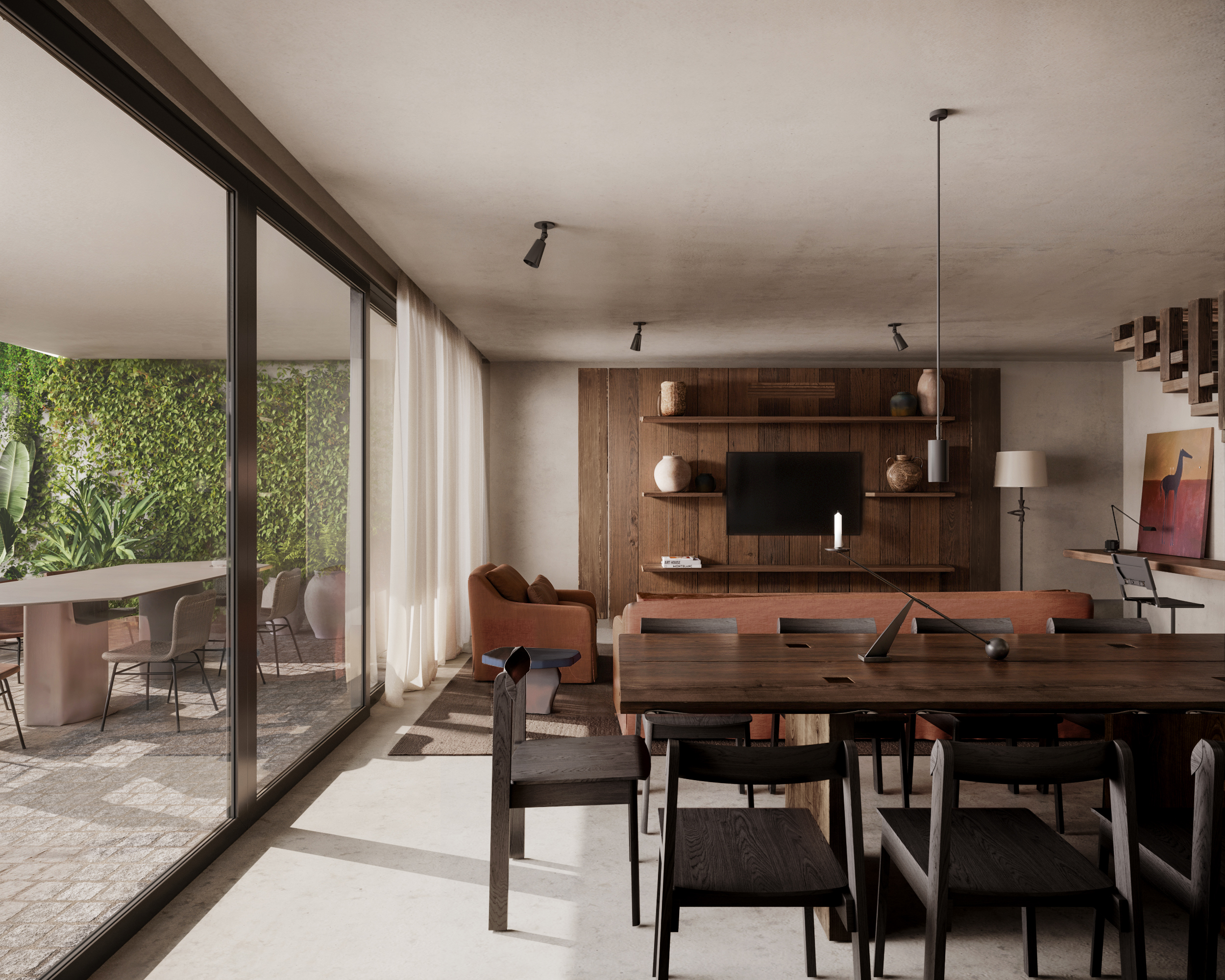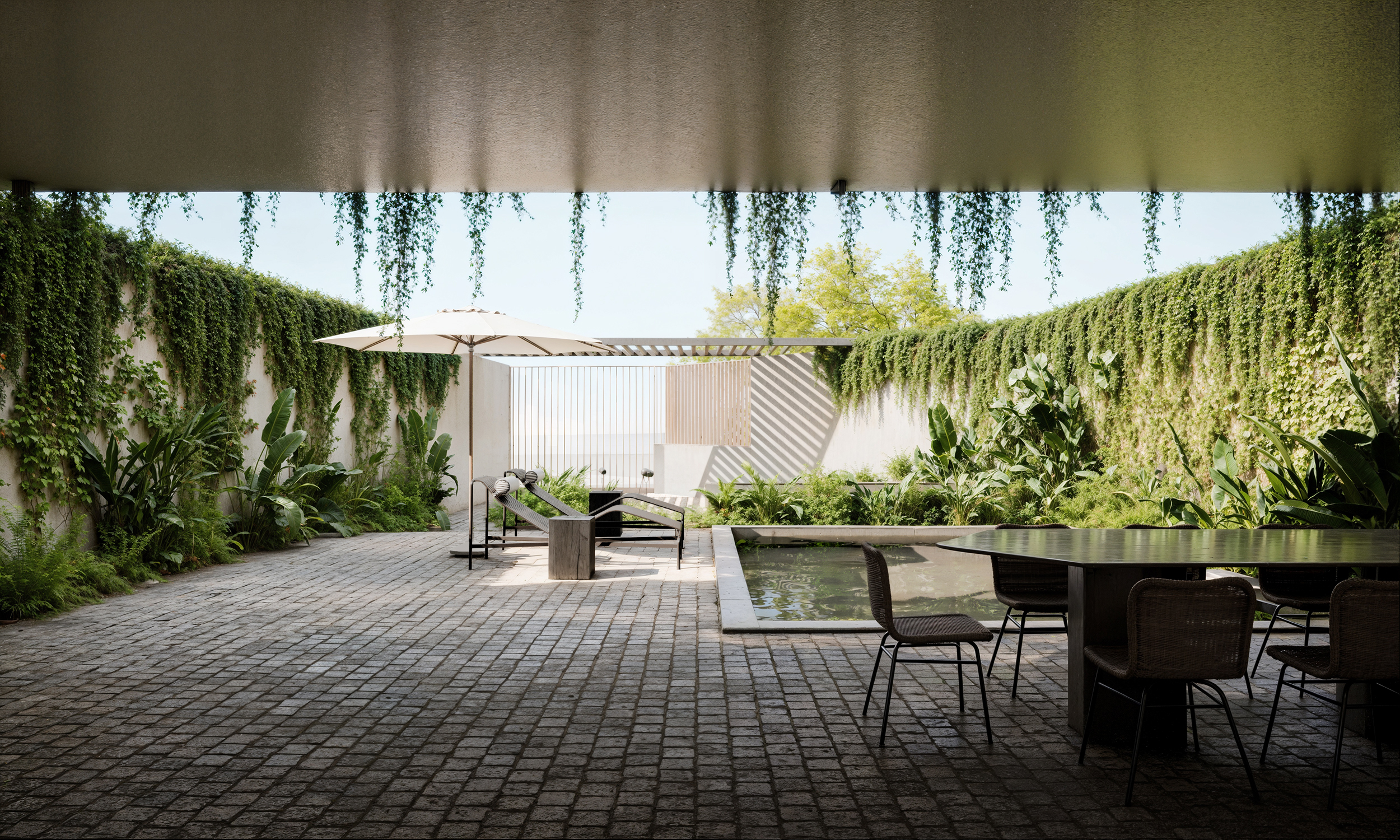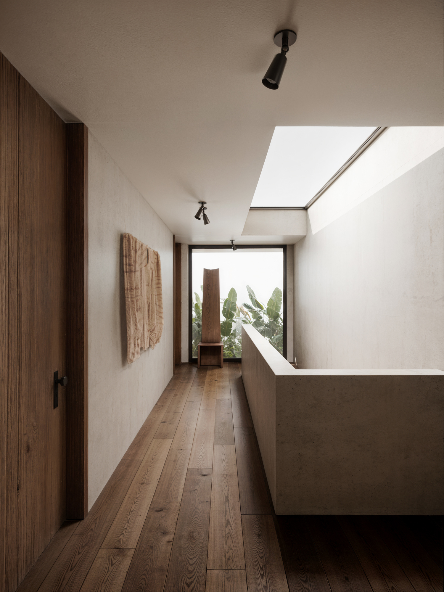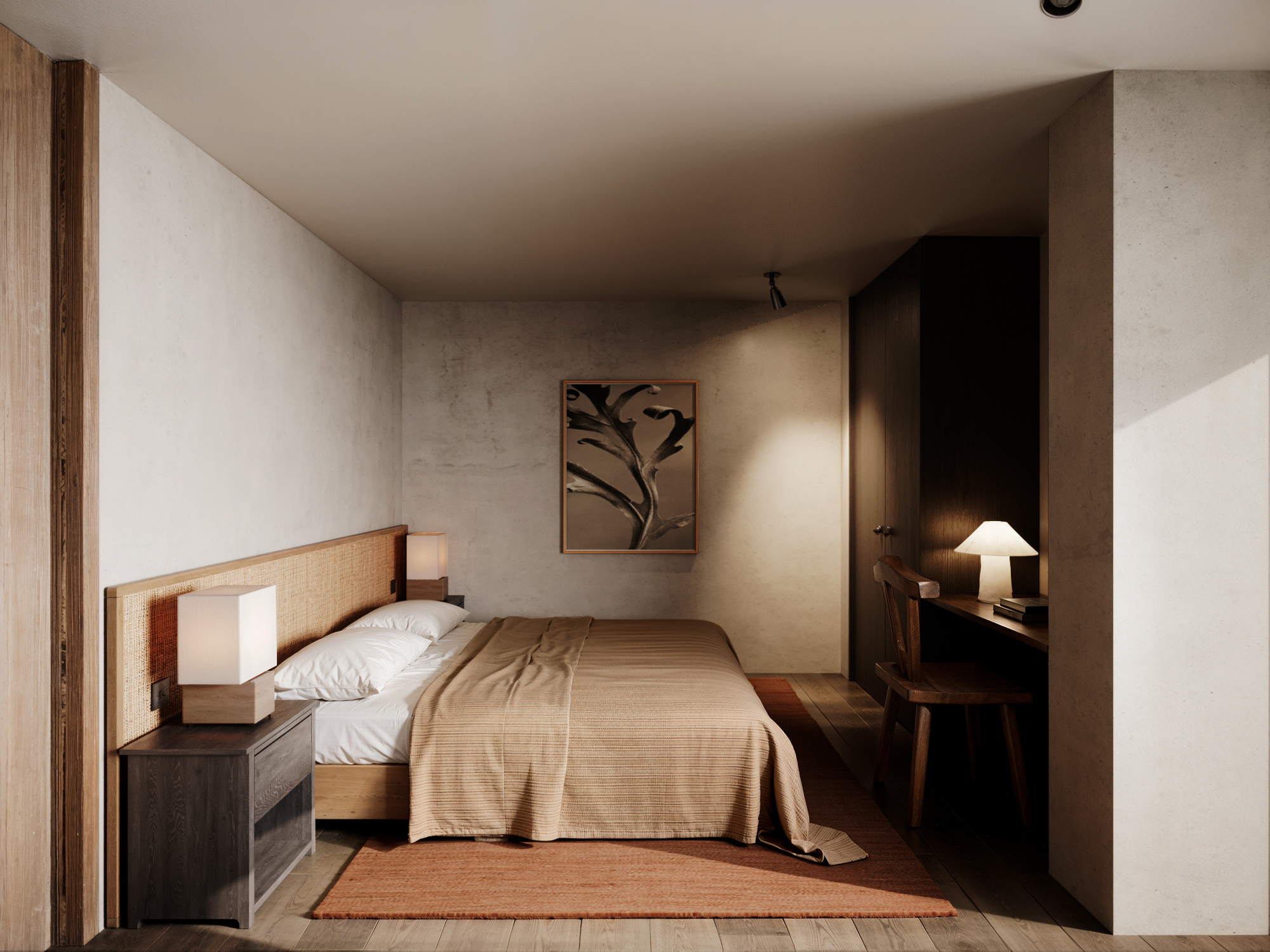 A arquitetura minimalista do Atelier SAL Arquitetos cria monólitos de betão que se integram na paisagem vulcânica de São Miguel, enquanto o design de interiores da Daniela Franceschini traz calor e escala humana, com madeiras naturais, tons terrosos e lavatórios em pedra vulcânica. Piscinas, jacuzzis e pátios centrais completam o cenário, permitindo que a casa respire primeiro para dentro antes de se debruçar sobre o mar e a natureza.