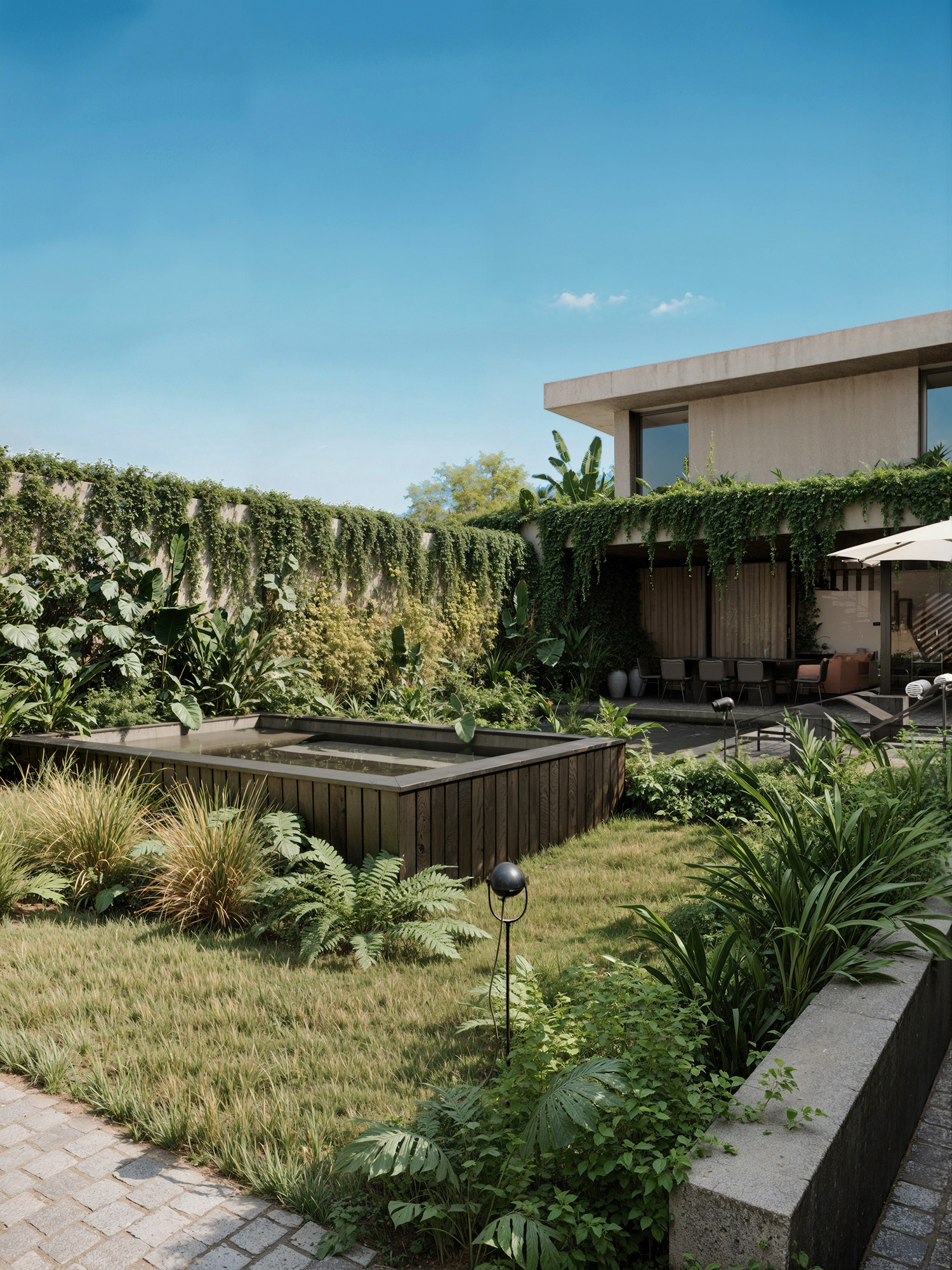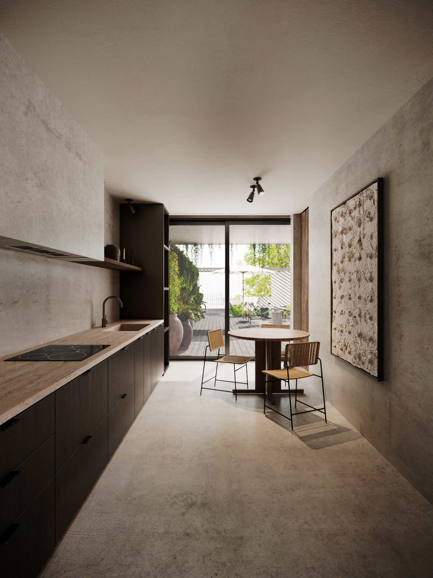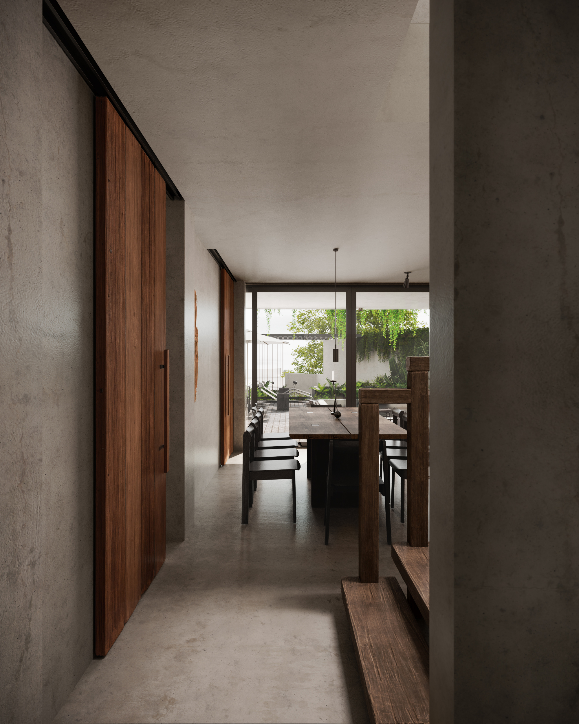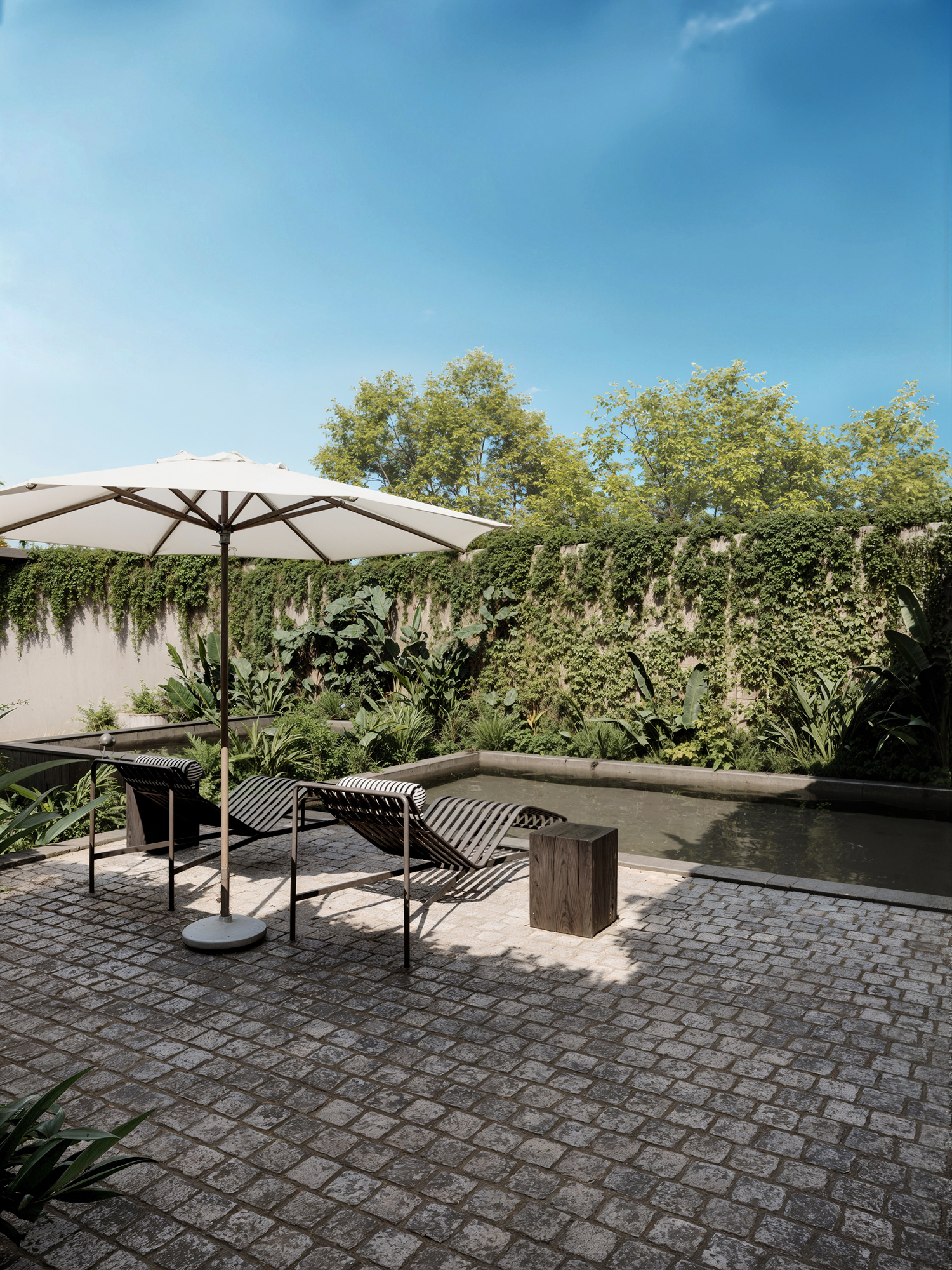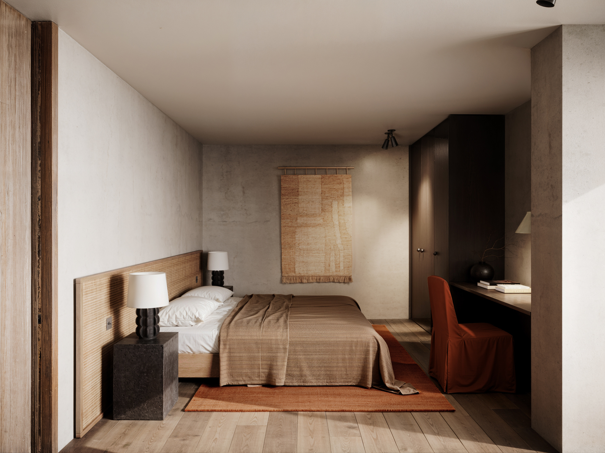 A arquitetura minimalista do Atelier SAL Arquitetos cria monólitos de betão que se integram na paisagem vulcânica de São Miguel, enquanto o design de interiores da Daniela Franceschini traz calor e escala humana, com madeiras naturais, tons terrosos e lavatórios em pedra vulcânica. Piscinas, jacuzzis e pátios centrais completam o cenário, permitindo que a casa respire primeiro para dentro antes de se debruçar sobre o mar e a natureza.